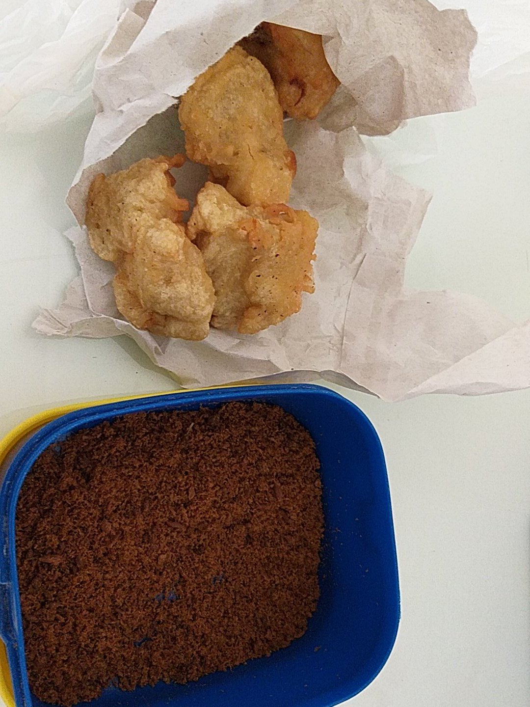 Menurut Ibu, ciri makanan Ternate sama dengan Manado. Letak mereka pun hanya berseberangan dipisahkan laut. Wajar juga ada kesamaan, ya. Tapi seperti yang saya ceritakan sebelumnya bahwa saya kecewa setelah mencoba pesanan kue Manado itu. Ternyata bukan salah pilih toko. Setelah saya cerita pengalaman saya beli cemilan Manado ini ke Ibu saya, ternyata memang ada perbedaan rasa makanan antara Ternate dan Manado. Yang saya rasakan adalah perbedaan rasa ikan, kegurihannya dan teksturnya.